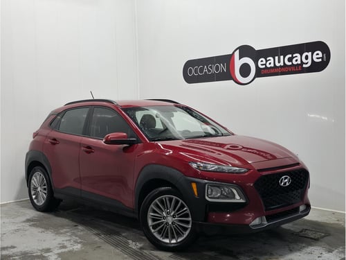 Le Hyundai Kona 2020 Preferred présente une élégante couleur rouge métallique et dispose d'un moteur 2.0L couplé à une transmission automatique et une traction intégrale, promettant une expérience de conduite plaisante.